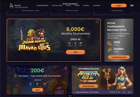 Social Tournaments, известная платформа социальных игр, позволяющая игрокам бесплатно играть в свои игровые автоматы. Лица в возрасте 18 лет и старше могут зарегистрироваться бесплатно и соревноваться, чтобы выиграть реальные деньги. С момента создания веб-сайта в 2019 году более полумиллиона игроков по всему миру получили вознаграждение за участие в последних демоверсиях игровых автоматов.